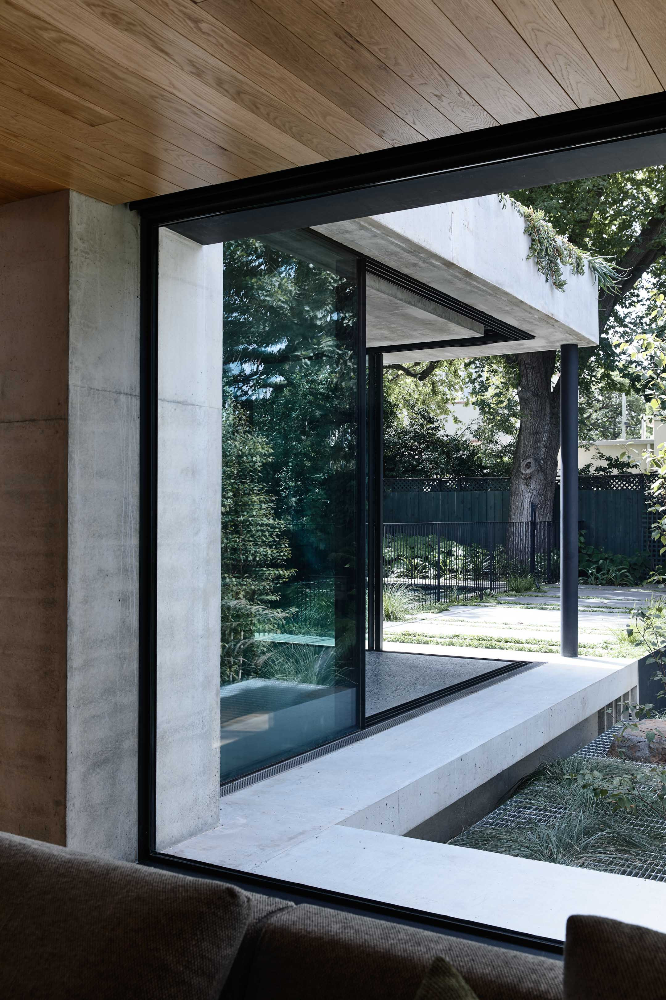 “You've now got this really kind of light window element that almost disappears into the landscape, which is offset against the heaviness of the concrete.”