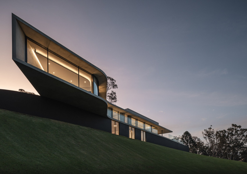 Vitrocsa’s aluminium sliding window profiles feature in a distinctive finish to complement the project’s rammed earth and weathered steel.